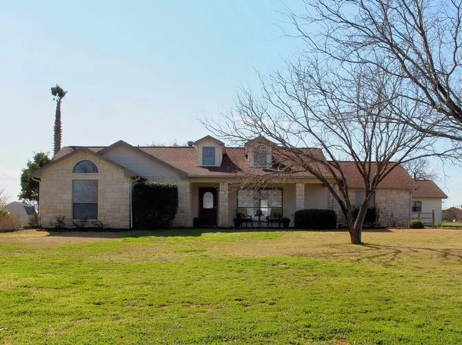 CORNER LOCATION ACROSS FROM LARGE RANCH. Delightful 3/2/2 stone home on 1.5 acres in a quiet, friendly country subdivision, with a ranch view and no immediate neighbors in back. Vaulted ceilings, open living area, beautiful rock fireplace, formal dining, user-friendly kitchen, breakfast area, breakfast bar, and a large pantry. Relaxing covered back patio, workshop, greenhouse, 2 fenced yards, and more. About 6 miles from Marble Falls, easy access to Austin, Fort Worth/Dallas, and San Antonio. In the beautiful Hill Country, Highland Lakes area of Texas.