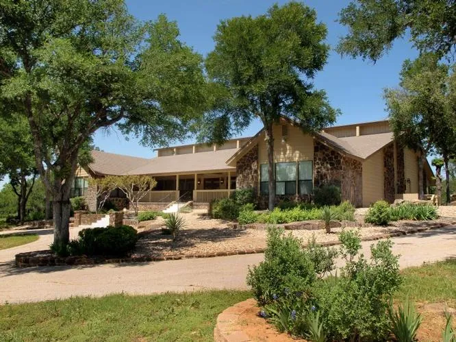 FABULOUS COUNTRY ESTATE on 77+/- acres. AG EXEMPT, NO RESTRICTIONS, 10 minutes from Marble Falls. Beauty abounds from the gated entry to the surrounding pastures. Huge foyer opens to a mammoth great room housing a chef's dream kitchen, breakfast area, formal dining area, large cozy living area with white stone fireplace, game area and wet bar. Adjoining the kitchen is a large butler's pantry and a roomy utility/laundry room with handy exit to the 3+car garage. Four bedrooms, four baths, and two half baths includes two masters. An elegant stone-floored gallery with many windows spans the front and overlooks a long covered front porch complete with Texas rockers. Views from the front go for miles. A large media room adjoins the wet bar for your enjoyment. Across the back of the home is a pleasant covered deck with peaceful views of the yard and pastures beyond. And, you can move right i...