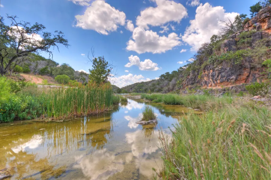 This is an amazing deal on a live water Hill Country getaway, with one of the most picturesque and scenic backdrops one could hope for. At 90 acres, this ranch is located near Lake Buchanan, and is just 1 hour from Austin, TX. The ranch has 2,500 ft of both sides of Peters Creek, with part of the creek dammed up for swimming or fishing. There is currently a pristine 256 sq ft cabin on the property, with wrap-around deck.