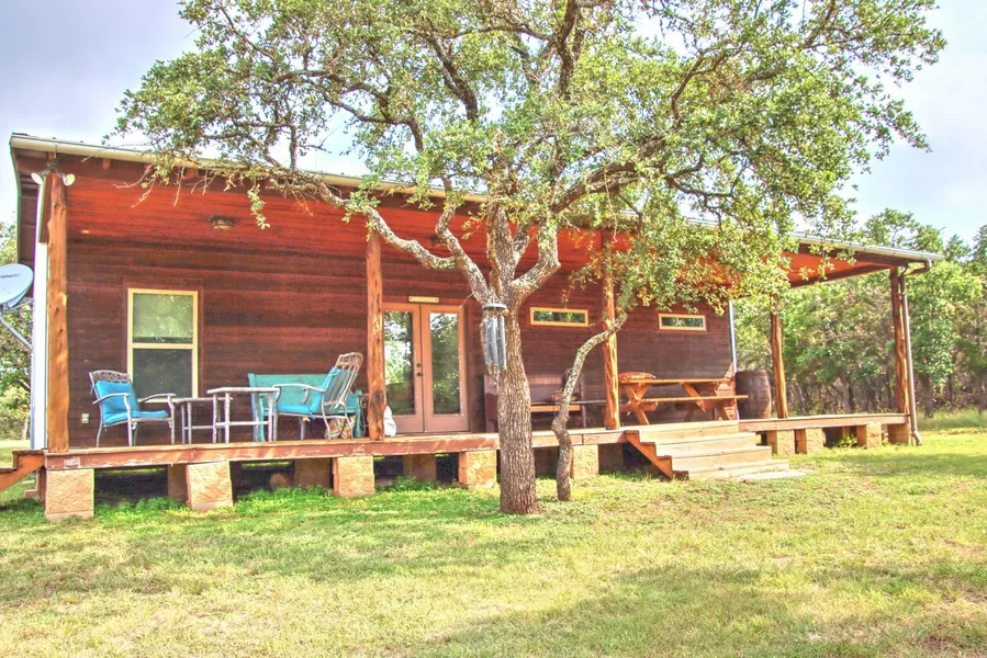 Also, on the property is a spacious 30x40 metal building on a slab. This structure offers excellent storage on the property. Contained in this building is a nice space with a kitchen open to the living room with bunkbeds and one full bath. Both the cabin and this building are decorated nicely with a country theme. The building was constructed in 2012 and has large roll-up doors on both ends. Spray on insulation was placed on the interior ceiling to keep it cool and warm. There is a full hook-up for a washer and dryer also in this building.