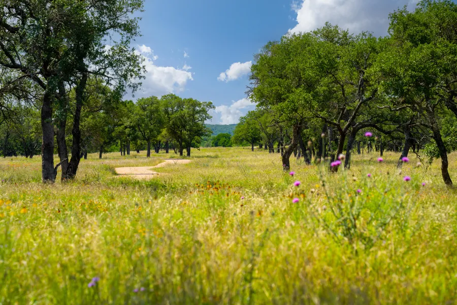 As you explore this remarkable land, you'll be enchanted by the majestic presence of towering post oaks, live oaks, and elm trees gracing the landscape. Picture yourself strolling through knee-high flowing grasses, immersing yourself in the natural beauty that surrounds you.