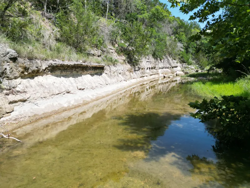 Mason Ranch boasts approximately 1,500 feet of frontage on Campbells Branch Creek, adding natural beauty and endless recreational possibilities. With 100 feet of elevation change, the landscape provides varied terrain that is ideal for hiking, hunting, and exploring. The property is a hunter's paradise, teeming with deer, turkey, dove, hogs, and other wildlife.