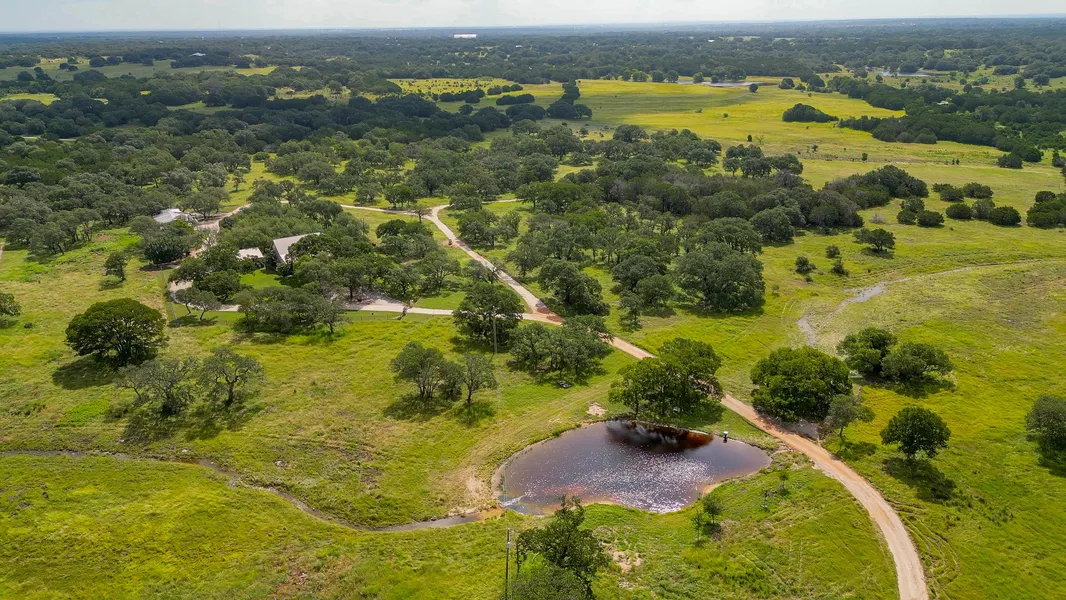 From the moment you pass through the automatic gated entrance, your welcomed into a peaceful, immaculately maintained Texas paradise. Follow the private road past green pastures and towering oak trees to discover a property that offers both charm and function. A lined, stocked pond complete with an automatic fish feeder holds water year-round and adds to the serene, park-like atmosphere.