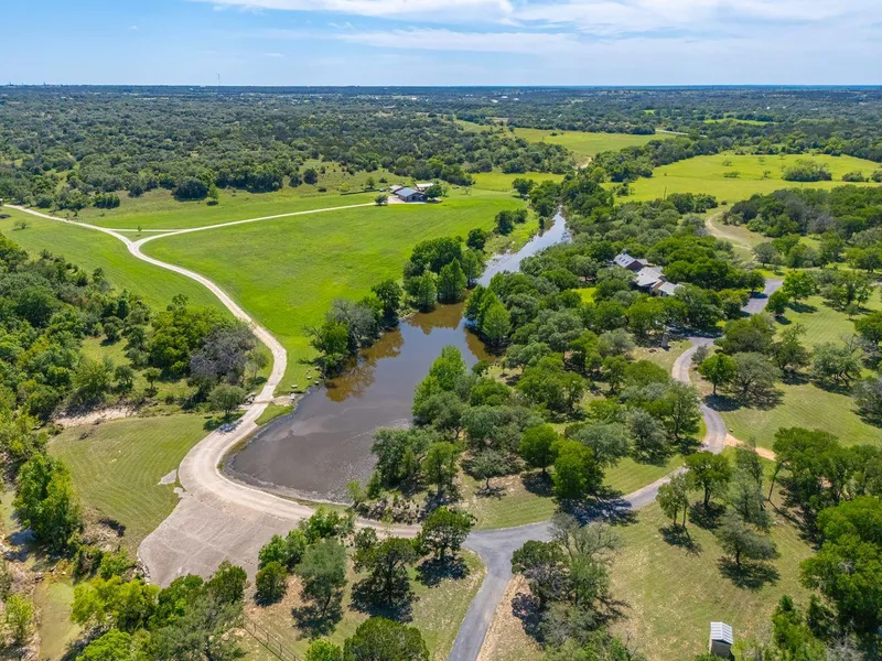 3 Creek Ranch is thoughtfully improved with enhancements that blend seamlessly into the natural surroundings. A stately gated entrance ushers you into the ranch headquarters, where a paved road winds through beautifully manicured grounds accented by mature Live Oaks and vibrant Crape Myrtles. At the end of the drive sits the 5,000+/- sq. ft. custom limestone main residence, perfectly positioned to overlook the tranquil waters of Mill Creek.