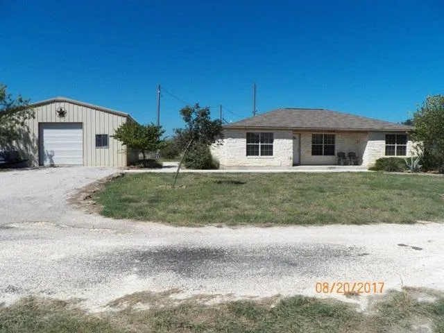 Beautiful lake and hill country views from this 3 bedroom 2 bath home. Features include a large kitchen with Granite counters, stained concrete floors, great master bath with large shower, 100 % stone exterior, hot tub, outdoor kitchen, large steel workshop/garage and, Oh yea, did I mention the views? All on 10 lots.