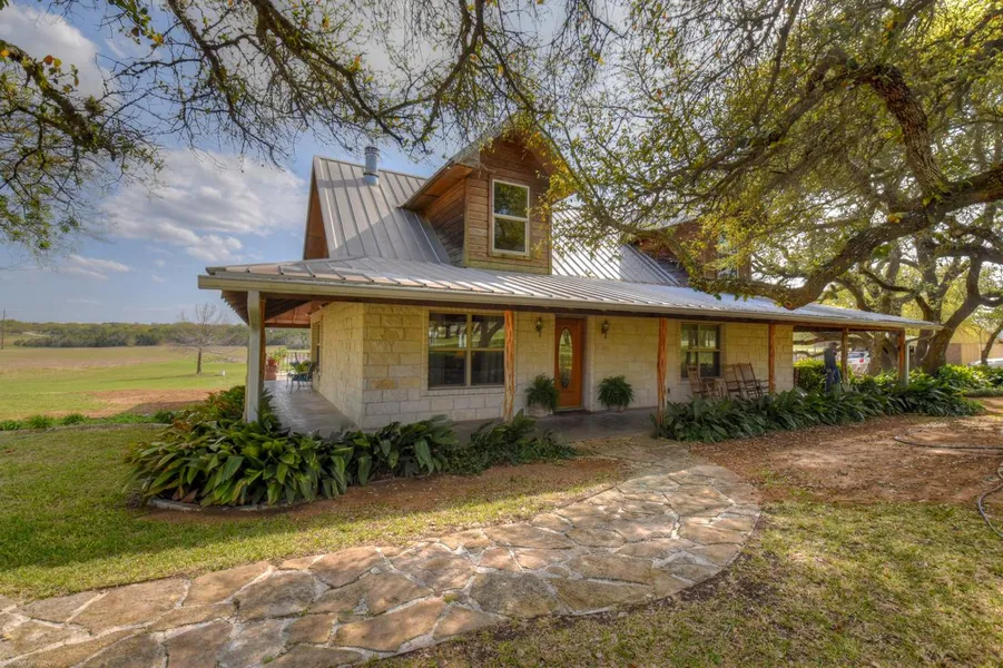 Contingency see agent. Unwind and enjoy! This quaint home is situated on 2.324 acres and is surrounded by live oaks. Established landscaping, large fenced vegetable garden and multiple rock flower beds make this a gardeners dream. The custom 1 & 1/2 story limestone home has a metal roof and wrap around porches, big deck and flag stone patio that would be perfect entertaining or just relaxing in the hot tub, watching the native wildlife.