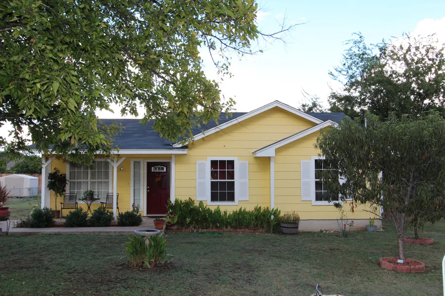 Cute home in great small town community! The landscaping and front porch add to the charm of this three bedroom, two bath home on this large lot with nice shade trees and fruit trees! Huge covered area off of the back of the house allows you to enjoy the over-sized backyard! Two outbuildings convey with the property and allow for extra storage and a place for your yard tools! Recent roof and hot water heater! Come visit today and make this one home!