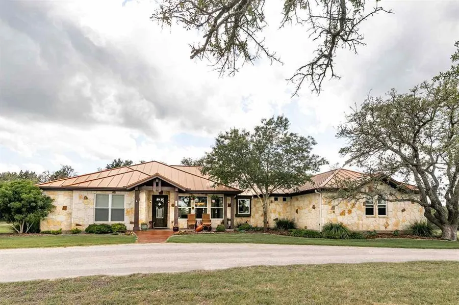 Beautiful custom estate on 11 acres. Open plan with tons of natural light, windows, high 12 ft. and vaulted ceilings. Gourmet kitchen, office, and game room. Backyard oasis with large porch overlooking lush landscaping, oak trees, and swimming pool/hot tub. metal 30x 40 workshop with two outside carports/work spaces (ea. 750 sq. ft.). 30,000 gallon rainwater collection system and 2500 gallon well water storage. DSL internet capability. Country living in a gated community just minutes from town. tons of wildlife. AG exempt