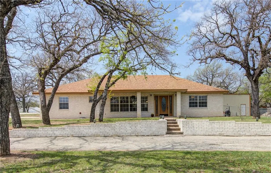 Lake front community near Burnet, TX and the breathtaking Texas hill country. This ranch style home sits on a half acre corner treed lot with circle drive and has 3 bedrooms, 2 bathrooms, office/study that could EASILY be a 4th bedroom! No carpet...tile throughout, updated kitchen with granite counters and stainless appliances. RV hookup with 110 volt plug up, workshop that measures 14X32 with 10X14 loft, and one 12' wide role up door, lights, plugs and 240V welder plug. Covered front and back porch for good ole country porch sittin'!! Nearby fishing and boat ramp and all the fun activities lake life has to offer!