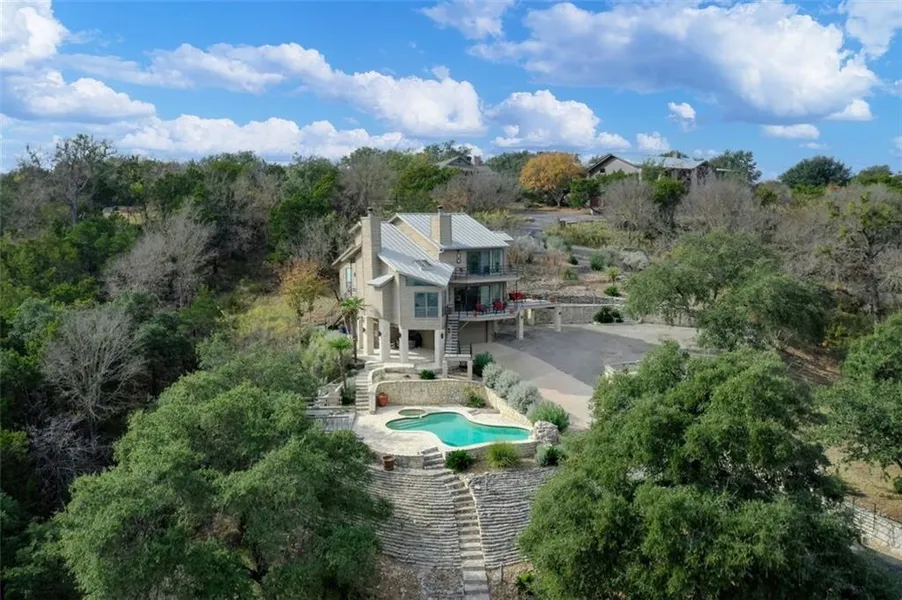 This contemporary lake front retreat sits in one of the most beautiful locations in the Hill Country. From inside to outside, this is the place to entertain year round in seclusion, privacy and security. The main living and owners suite are expertly positioned to capture the natural serenity that you're longing for. Experience the morning sunrises and evening sunsets from your choice of multiple outdoor spaces, pool and hot tub. There is plenty of parking with private, gated drive. STR ok. Windermere Oaks Marina with boat slips, and private boat launch for owners and guests, tennis and basketball courts, swimming pools and park pavilions are all for your enjoyment in this private gated community.