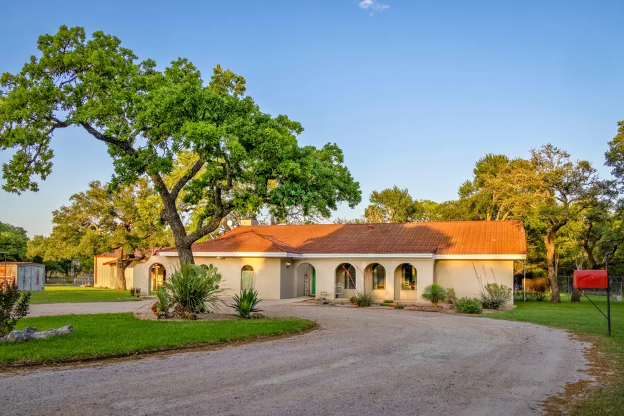 Spacious 2433 SF Stucco home sitting on 3.9 Acres. This great property is perfect for entertaining with 3 living areas in the house, large covered porch, and a 1200 SF metal shop with more covered porches. The house features new windows and screens, new A/C unit, 3 bedrooms, 2 baths, formal living room, dining area, open kitchen and den, wood burning fireplace, 3rd living area currently being used as a home office w/ the utility closet, master bathroom with tiled shower and 3 closets, large separately fenced back yard,and much more. The metal shop has a full bath, kitchen area with commercial sink, attic space, water heater, bar, wood burning stove, 2 roll-up doors, and a covered porch. There is also several animal pens and shelters with electricity and water. The property backs up to Haley-Nelson park and is in a quiet neighborhood.