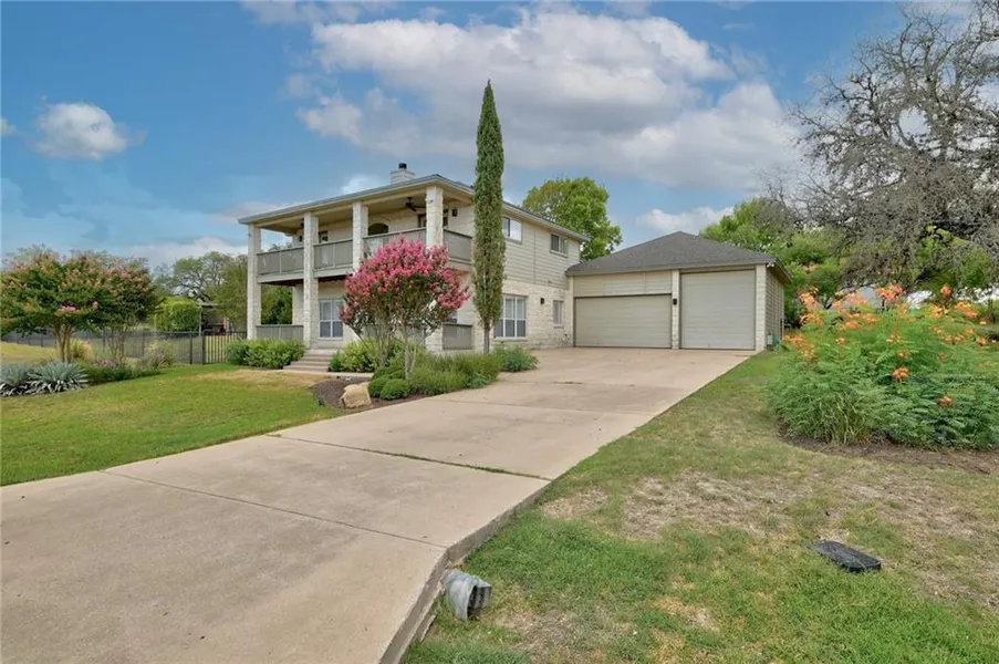 Spacious home in gated Lake Travis Waterfront community. 4 bedrooms plus home office, 2 baths, with large (30'30') attached 3-car garage. Garage has 12' ceiling with 11' overhead door to accommodate your RV, boat, or shop. 50 amp service for power or plug in your electric car. Landscaped yard with automatic landscape sprinkler. Water Softener. Luxury Vinyl Plank Flooring (2021). Plantation Shutters on windows (main living & main bedroom 2022). Fabric shades (kitchen & breakfast area 2022). Enjoy large screened patio in back with 2 fruit trees and butterfly garden in backyard or sit on the front upper deck and enjoy views of Hill Country and Lake Travis. Ridge Harbor Community - on Lake Travis. Near Muleshoe Recreation Park and famous Krause Springs, and Opie's BBQ. Short distance to Ridge Harbor community pool, marina, tennis and pickleball courts.
