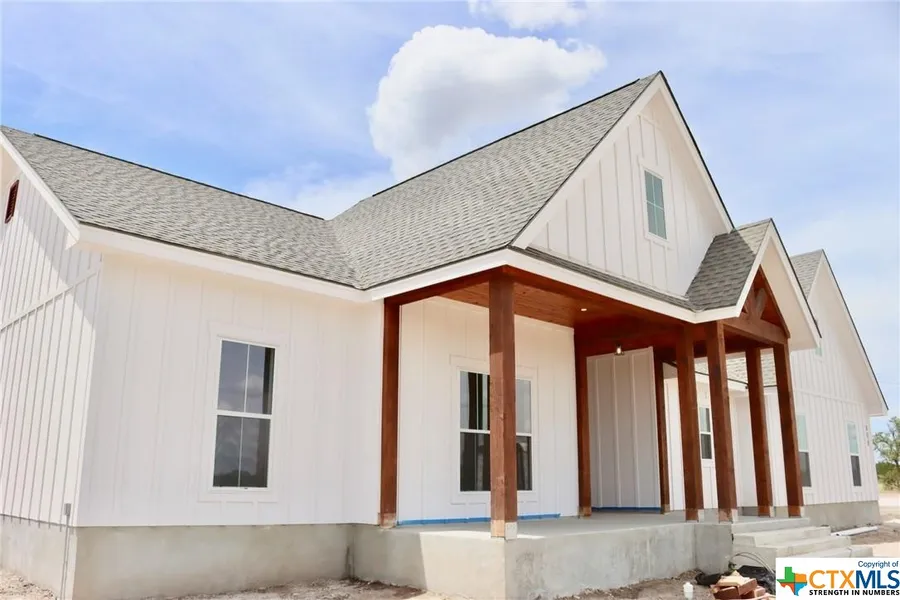 New Construction: Modern Farmhouse on premium 2.47 acre lot in Ridge Point Estates! This stunning home is complete and move in ready. Open concept design includes gourmet kitchen overlooking great room and ventless/electric fireplace. With 4 bedrooms, 2 full bathrooms, and 2 car garage boasting upgraded fixtures/finishes throughout. Primary suite provides a luxury bathroom with double vanities, oversized walk-in shower with dual shower heads, walk in closet, and convenient access to the laundry room through hallway and master suite closet. Large 2.47-acre lot features private well and septic, a grove of mature multi-trunk live oaks, and sits on a high elevation providing amazing views overlooking the hill country and seasonal creek. Ridge Point Estates is a 98-acre community in Bertram, TX, located 1 hour north of Austin, 45 minutes to Georgetown or the Apple Campus. Ridge Point Estates ...