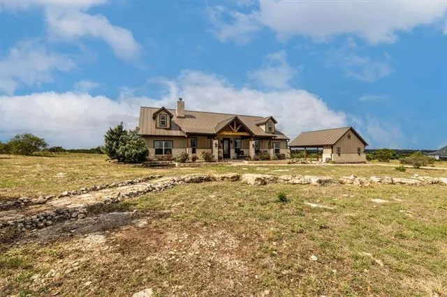 PRICE REDUCTION: Welcome to Ranches of Canyon Creek a gated subdivision in the Oatmeal Community of Bertram, Texas. Here you have 10 acres of prime real estate that is located in a gated community with other large acreage properties. This site built home is a 2484 SF house with a detached garage was built in 2017. This three bedroom, 2 bath house with an office, has a limestone fireplace with built in book shelves on each side. The entertaining area, Living, Kitchen and dining area are huge and offer lots of space that allows for a nice large space for gathering. There is also a metal equipment barn and a greenhouse, in the backyard close to the firepit area. The back boundary of this property has a wet weather creek. These 10 acres are Ag exempt.