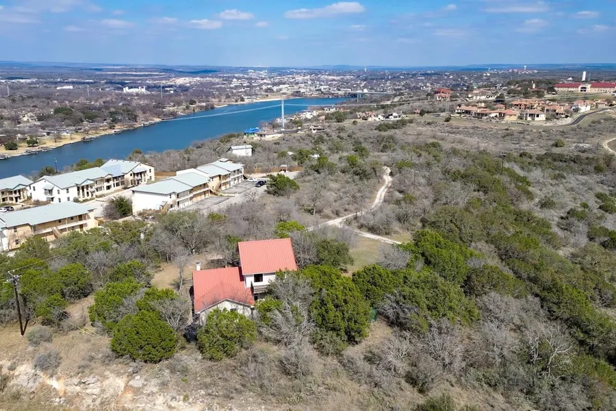 Over 10 acres with panoramic views of Lake Marble Falls, downtown Marble Falls and rolling Texas hill country, plus a two-story 2,400 sqft 3 bed/3.5 bath custom home set amidst established landscaping, oaks and native trees, and rocky outcroppings. Two detached carports plus two large water storage tanks. Huge development opportunity with elevated lake views and close proximity to historic Marble Falls (approx 2 miles); The Horseshoe Bay Resort (approx 5.4 miles); Hilton's $18.5m 'The Ophelia Hotel & Conference Centre' under construction (approx 2.2 miles); The Shops at Flatrock Crossing which is a $130 million, 350,000-square-foot retail center expected to open in 2026 (approx 2.6 miles), and Baylor Scott & White Medical Center (approx 4.6 miles). The acreage, views and location make this a great opportunity if you are looking to build your dream home and you may consider using the existing home as an income producing rental property subject to permits. Lots of development possibilities. New survey.