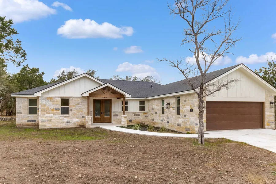 Come see this beautiful home built by Burdett Hill Country Homes! Nestled in the hill country, just minutes from town, but has all the feels of the country! This stone/batton board combo home is beautifully finished with great details: large walk-in pantry, large kitchen with beautiful quartz countertops, large master with ensuite. Lots of storage in this housed endless possibilities for landscaping! This home is located at the end of a cul-de-sac, giving some privacy. Large covered back patio, good hill country vibes!