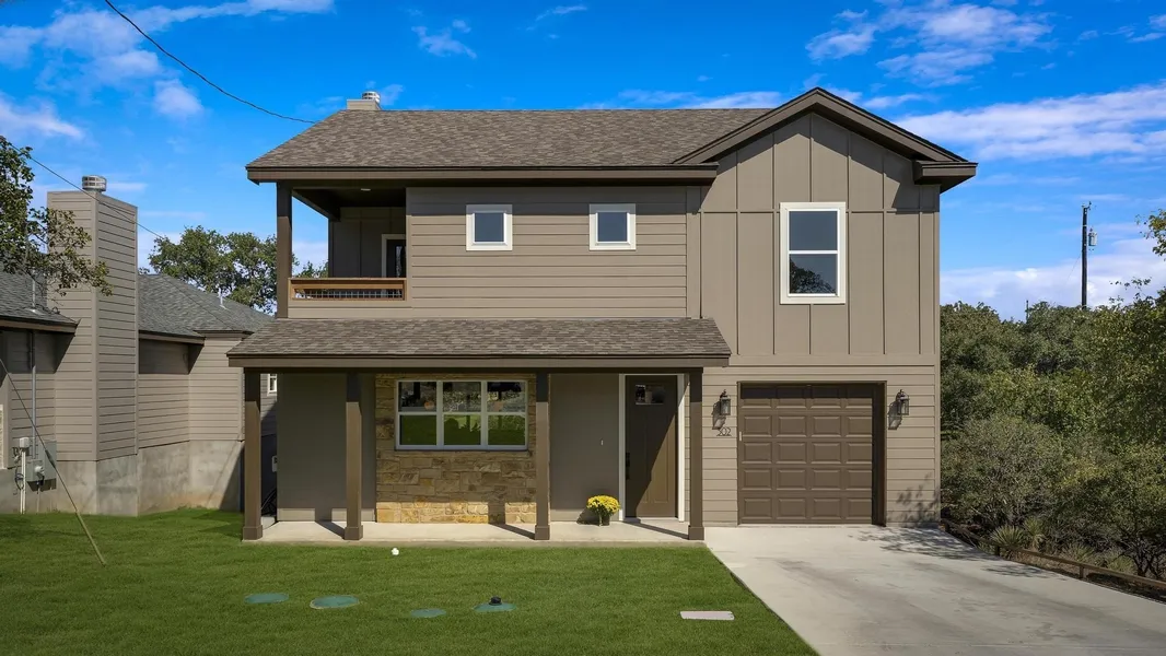 GREAT FAMILY HOME or SECOND HOME! STR ALLOWED! INCOME PRODUCING WITH LAKE LBJ VIEWS! Enjoy modern comfort and relaxed Hill Country living in this beautifully designed 2023-built home with views of Lake LBJ. The open-concept great room features wall-to-wall windows that flood the space with natural light and showcase views of the deck, backyard, and peaceful cove. The kitchen anchors the home with a large island, ample counter space, and abundant cabinetry, flowing seamlessly into the living and dining areas-ideal for entertaining or everyday living. Whether hosting guests or enjoying a quiet evening by the fireplace, this home is designed for flexibility and comfort. Step outside to the north-facing deck, constructed with coastal-grade timbers, perfect for grilling or unwinding at the end of the day. Upstairs, the owner's suite offers a private retreat with a lake-view balcony, spacious walk-in closet, and en-suite bath with double vanities and a large walk-in shower. Two additional bedrooms share a Jack-and-Jill bathroom, and the upstairs utility room includes washer and dryer. Seller will consider conveying furniture. Additional features include an extra-deep garage with nearly 8-foot clearance and finished floor, ideal for boat storage or a workshop, plus a full sprinkler system for easy maintenance. With short-term rentals allowed, lake views, and modern construction, this is a rare opportunity to own in the Texas Hill Country.