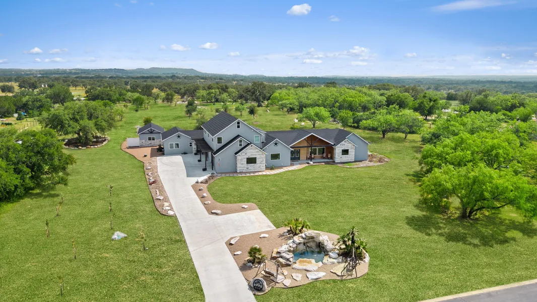 The height of style awaits you in this exclusive, custom-built home in the coveted Double Horn Ranch. Discover a gorgeous Hill Country retreat that boasts of two incredible homes under one roof. Sited on 4.25 acres, this one of a kind home was built by a builder as his personal home. It includes an expansive backyard with plenty of space to entertain. The exterior features beautiful stone water fountains, firepit, xeriscape, frisbee golf course, enclosed back patio, relaxing balcony overlooking the yard, and a hot tub. Highlighting this custom build is the stone coated steel roof, turf grass around the yard, and the extra-large 4-car garage. With contemporary inspired interiors throughout this 3247sqft, 3bed / 3 bath home includes a sprawling 1500sqft Mother-In-Law or Guest wing with a separate entrance, 2 additional bedrooms and bathrooms, a separate entrance and laundry room. The Ow...