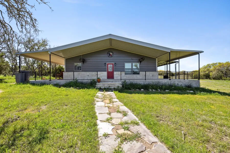 This darling move-in ready metal farmhouse located in The Ranches at Blackbuck Ridge has 3 bedrooms and 2 bathrooms and sits on 5 acres. There is also an additional connecting 5 acre lot available to purchase separately. It has an open kitchen/living area that is perfect for family gatherings. The 855 sq ft wrap around porch has amazing views of the property, wonderful sunset views and the stargazing is brilliant. The oversized garage/shop area is 1088 sq ft so it will hold lots of toys. In our community you can be as social or as private as you like. We have events and activities to build strong relationships with our neighbors. The low tax rate and wildlife valuation tax benefit is a huge perk. Please come for a visit this hill country beauty and you won't want to leave! I am happy to take you on a neighborhood tour and introduce you to neighbors.