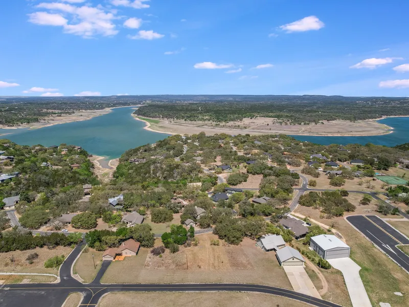 A private airport hangar home lot with Lake Travis access in a gated community located in Spicewood Texas is a unique opportunity to live with your plane while enjoying the lake life. The spacious third of an acres flat lot with taxiway access allows you to build your dream home with a large enough garage to accommodate an airplane, RV, boat, and other recreational toys. Private water, electricity, and sewer are available. Windermere Oaks is a gated community with pools, tennis courts, a pavilion, a boat ramp, and a marina.
