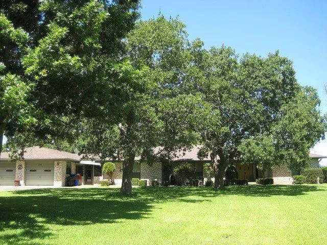 Spectacular waterfront & sunset views! About 1.19 +/- acres with beautiful oak trees. Approximately 542 WF with concrete retaining wall abutting lake. Home is 3/3/2 and approx. 3900 sf including a private 826 sq. ft. game room/office that has the 3rd bath. Home is 100% masonry limestone home with lake views on three sides. Separate formal and informal dining areas, 2 Living Areas, 3 individually controlled zones of heat/air. One well for home and another high output well dedicated only for sprinkler system (for both lots) and 16x26 garage/workshop on 2nd lot. Large cobblestone terrace (with two granite tables and benches) extends into the gazebo. Current owner has enjoyed the property for 20 years. They are also only the 2nd owners.