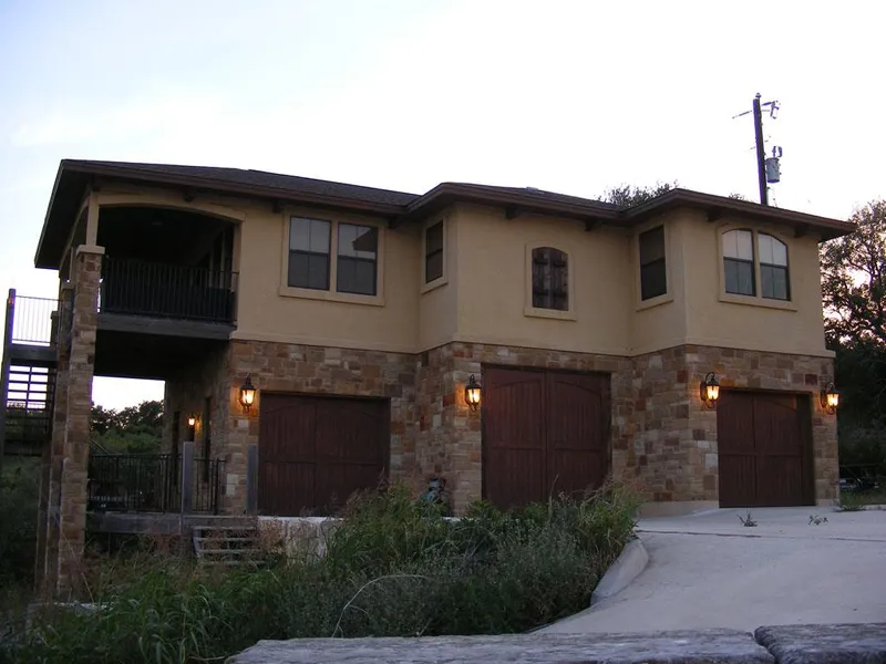Lake Travis Waterfront Home. Outstanding Lake and Hill Country Views. 2-Bedrooms, 1-Bathroom, 1-Living area. 2.79-Acres Granite kitchen and bath counter tops. Stainless steel kitchen appliances. Granite breakfast bar buffet. Corner pantry closet. Indoor laundry. Hard tile diagonal floors. High ceilings. Wood wicker window shades. Lovely stone and stucco exterior. Covered lower patio, upper covered deck balcony. 3-car attached garage has 2-windows facing lake & deep bay for boat on trailer. 1-slip covered boat dock, water well. 15-minutes to Marble Falls; 20-minutes to Lago Vista, TX