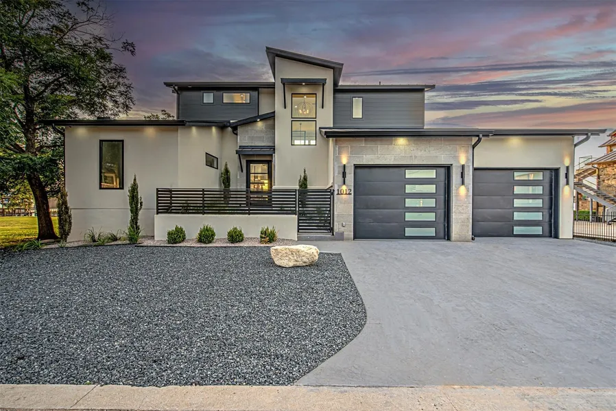 Welcome to an exquisite new construction at 1012 Impala Drive, Granite Shoals, TX, where elegance meets serene lakeside living. Nestled on a generous 11,325 square foot lot with 93 feet of Open Water Lake LBJ , this waterfront sanctuary offers breathtaking open water views of Lake LBJ. The thoughtfully designed interior boasts high ceilings and abundant natural light, accentuated by expansive windows. Culinary enthusiasts will revel in the gourmet kitchen, featuring high-end appliances, including a wine fridge and espresso machine, along with two islands for effortless entertaining. The main level primary suite offers tranquil vistas views with access to your own private patio. There is an ensuite on main level. Upstairs you will find another ensuite, along with a bunkhouse with custom bunkbeds, huge shower and bathroom with double vanity, spacious family room that has a covered patio with amazing views. Outdoor living is redefined with a private courtyard as you enter the home. Backyard entertaining at it's finest, Backyard kitchen, fire pit, a stunning Plunge Pool design by Denali Pools. A custom bridge leading to a boat dock with jet ski lifts or take stairs up and there is a party deck with amazing water and panoramic views, along with a swim deck. A two-car heated and air condition garage completes this stunning one of a kind lake home on Open Water Lake LBJ. This home was just completed in July of 2025 and Is Award Winning Parade of Home Finalist .
