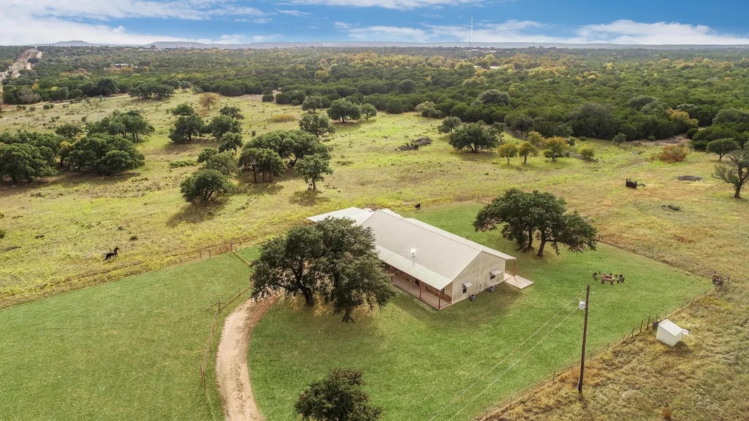 18.61 Acres with gorgeous Barndominium style home. This property is set up perfectly for horses, raising livestock, and hunting. The home is 1800 sq ft and offers 3 beds and 3 baths and a bonus loft. The living room and kitchen are open and offer extra high ceilings. The master suite offers an awesome rock walk in shower. The land is clean and offers some beautiful trees along with some great grazing land. The livestock pens and shed offer nice stalls and a enclosed tack/feed room. The grounds are nicely manicured around the home. There is a nice covered carport attached to the home that also offers some nice storage areas. Located just minutes from downtown Burnet. This is a must see!!!