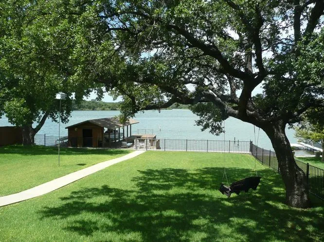 Texas Hill Country lake home on wonderful Lake L.B.J. open waterfront. The house is on a special, groomed lot with a giant Oak tree shading the main bedroom suite. The boat dock has an electric lift and outstanding views. The lake has a gradual, sandy beach and is idea for swimming and fishing. Hidden Oaks is located between Kingsland and Marble Falls, close to amenities.