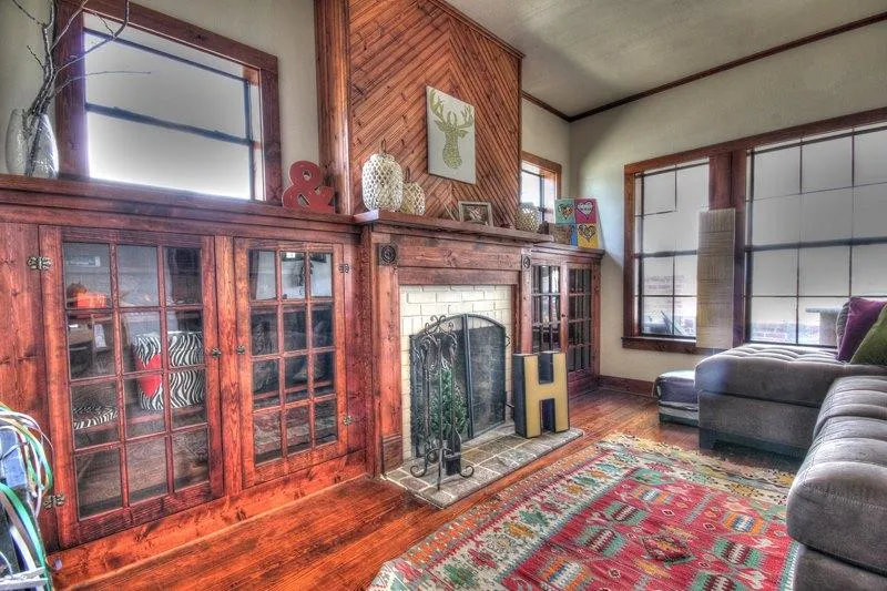 A wood burning fireplace is the centerpiece in the family room and framed on each side with shelving and decorative glass paned doors. Large windows let in plenty of natural light with access to the covered front porch area. The updates have only enhanced the many details of this craftsman style home.