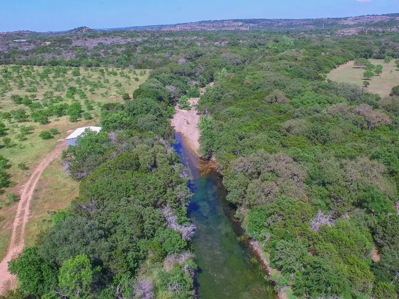 This boutique 94.9 +- acre ranch is a real Highland Lakes/Hill Country gem of a place. It boasts of approximately 4,000 feet of spring-fed Peters Creek on both sides for the majority of the ranch. There are approximately 150+ mature, producing Pecan trees. Mesquite and heavy brush constitute the eastern portion of the property.
