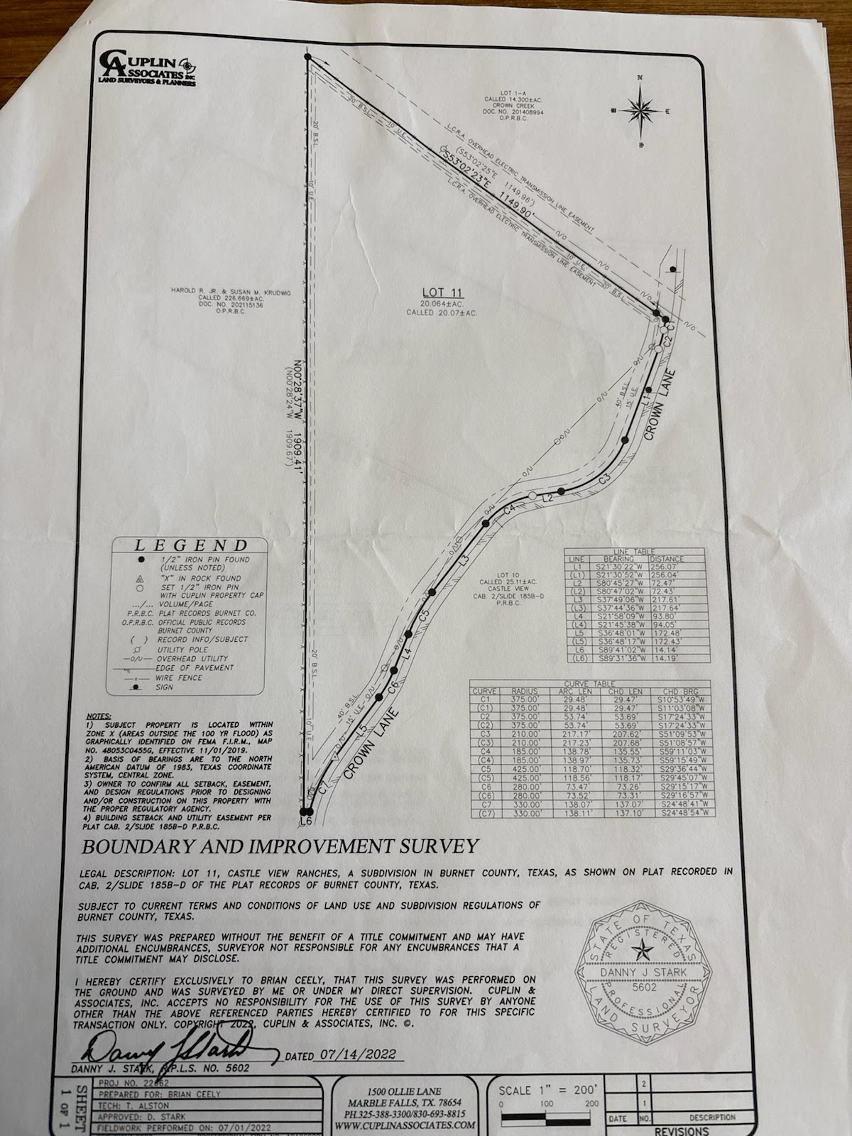 Research Parcel InformationFrom the light at Hwy 281 & Park Rd 4, turn west on Park Rd 4. Go .3 mi past Longhorn Caverns then turn north on Crown Ln into Castle View Ranches. Property is .7 miles from the gate on the left (when previous property fence stops). It is .3 miles long (& ends when next property fence starts). Must have agent accompany buyer to get them through the gate.