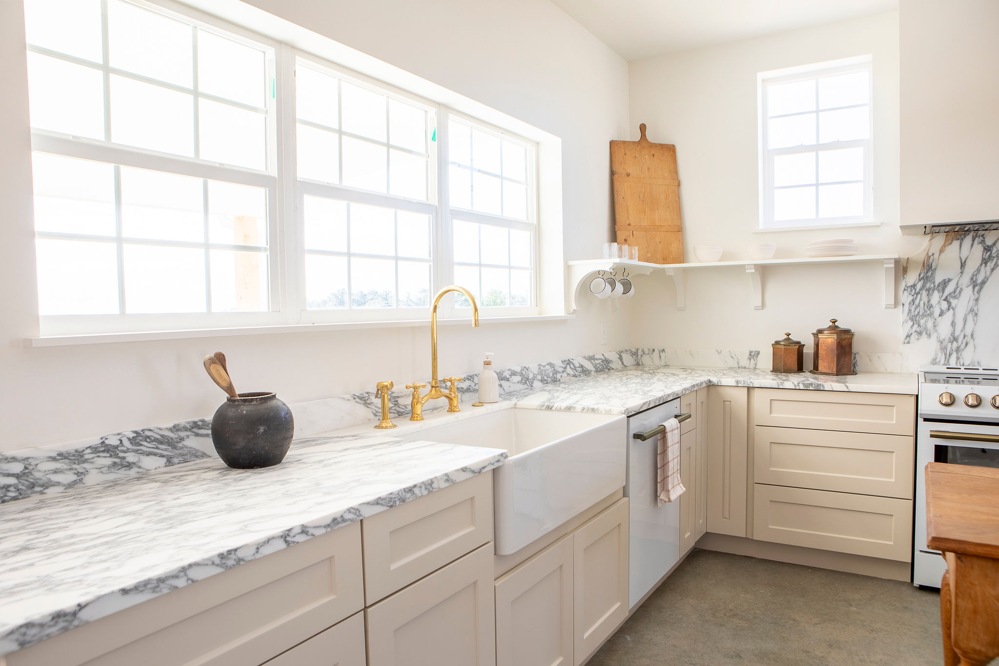 The Kitchen: A true showpiece featuring high-end appliances, classic white cabinetry, marble countertops, a farmhouse sink, and a stunning custom island — perfect for cooking, entertaining, or simply gathering with family and friends.