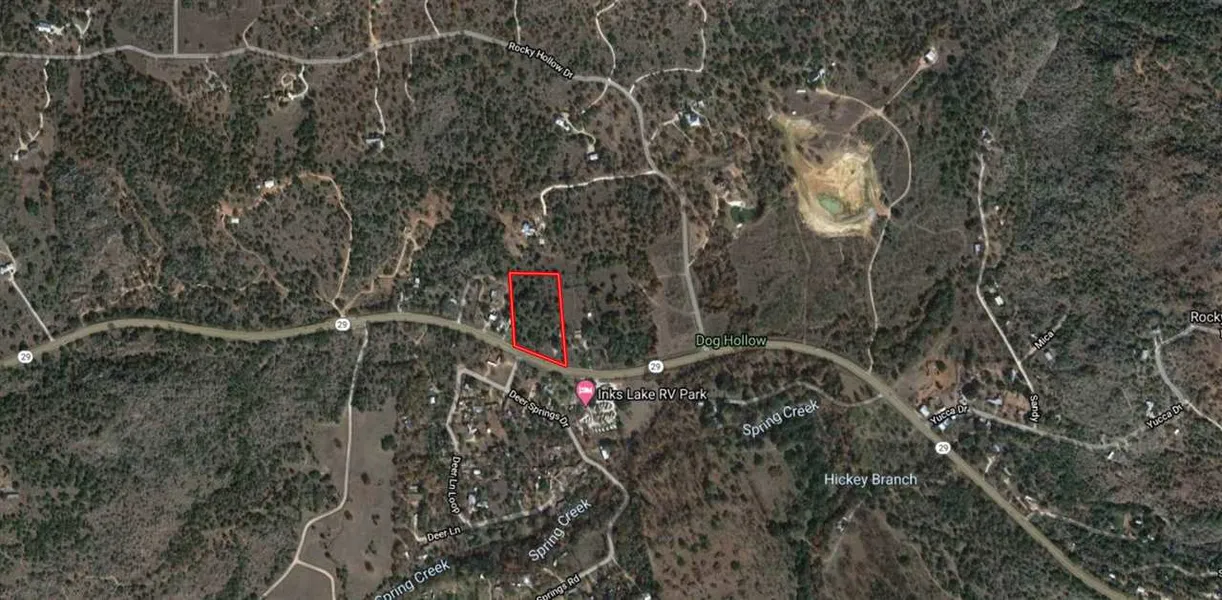 4 unrestricted acres with nearly 400 feet of Highway 29 road frontage. Great for an investor or for residence. Property has a 1467 sqft brick home that has been gutted and is framed for 3 bedrooms, 2 baths for residence or could be modified to be built out for commercial building. Nice addtional build site in rear with great hill country view. Big oak trees. This is a great site for RV park or storage facilty as it's near Inks Lake and Lake Buchanan. Some clearing has been done. Suvey available.