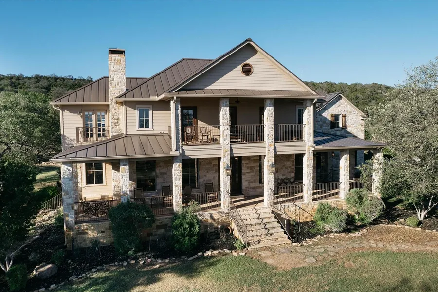 Perched high above Lake Buchanan with unobstructed views, this 2004 custom Texas-stone ranch is an ideal Hill Country getaway. Thoughtfully situated on 11 acres in the desirable Wolf Creek Ranch and less than four hours from Dallas and Houston, this 4 bedroom/4 bathroom retreat boasts views of the lake from every room! Features include reclaimed oak floors, mesquite island countertop, knotty Alder doors and cabinets, hammered copper sinks, a spacious primary suite with a private balcony, game room, media room, almost two acres of fenced-in yard space with irrigation around the house, over 2,000 square feet of covered porches and decks, hot tub, an oversized 3-car garage, additional storage building, and incredible sunsets. The home is also being offered almost fully furnished! Wolf Creek Ranch is a gated, Ag Exempt eligible, 1,300+ acre working ranch with amenities that include a private...