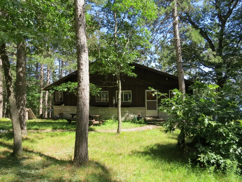 Diamond in the rough! Chalet style property on sought after Webb Lake w/ 150' of beautiful sandy frontage, gorgeous easterly views, & plenty of room for friends and family. Cabin features open dining & living space on the main w/ 2BR & family room below w/ 2 sleeping spaces & a walkout basement. Huge garage w/ loft space that could be finished into additional rec space, and additional storage below. Storage shed near the lake for all of your lake toys, & LG yard for outdoor entertaining. Near ATV & snowmobile trails!