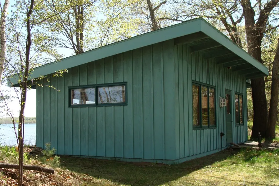 Dont miss this level 3.6 acre lot on 560 acre lake with 200 feet of perfect sand frontage. "Tiny house" on the water's edge is functional with kitchen, living and sleeping area, gas heater and in-floor heat. Sand point well with hand pump, and privy cover the necessities, and shed offers storage for your tools. Enjoy the rustic cabin while you plan your dream home. Only 75 minutes from the Twin Cities! Part of lot is across the road and offers plenty of space for extra garage.