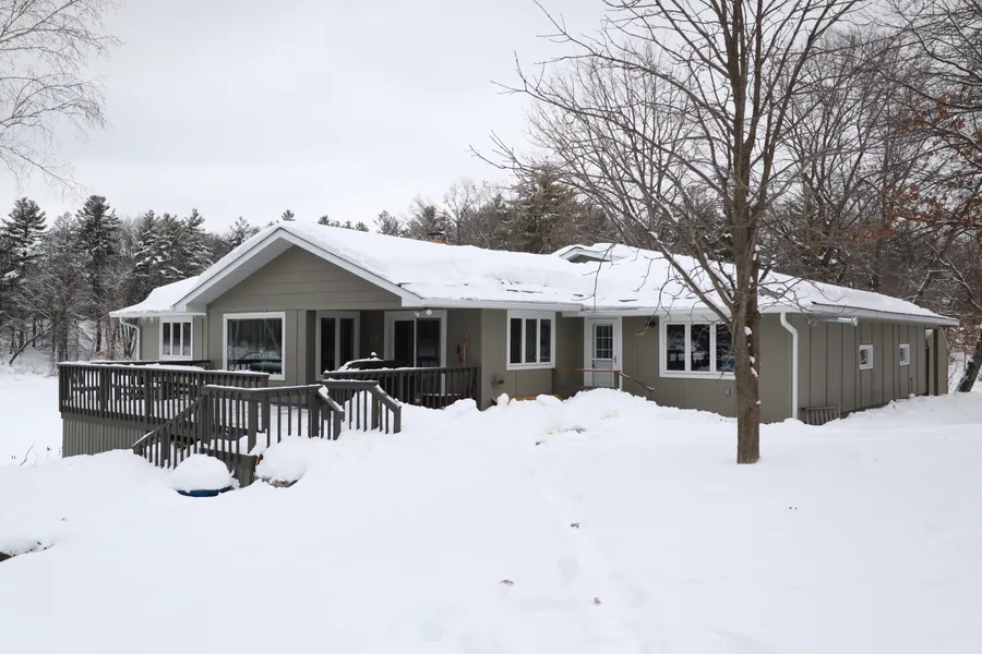 Welcome to Pepin Pointe – a private and picturesque 8 acre peninsula on Dubois Lake with an impressive 4BR, 2 ½ BA home! Home is tucked perfectly into the landscape & has fresh contemporary interiors after extensive recent remodeling. Updated kitchens and baths, flooring, lighting, siding, insulation & more. (See supplement for detailed list.) Master suite on the main along with guest bedroom & main floor laundry. Lower level has kitchenette, family room, 2 bedrooms, library, dedicated entrance and extra laundry hook up. Oversized attached garage is heated & insulated. Enjoy the outdoors from many beautiful venues including the lakeside deck or stone patio with fire pit. Vista views from every vantage point are spectacular in all seasons! Storage shed near home w/breezeway protection plus two buildings: heated & insulated wood shop with attached storage space & pole building for boats an...