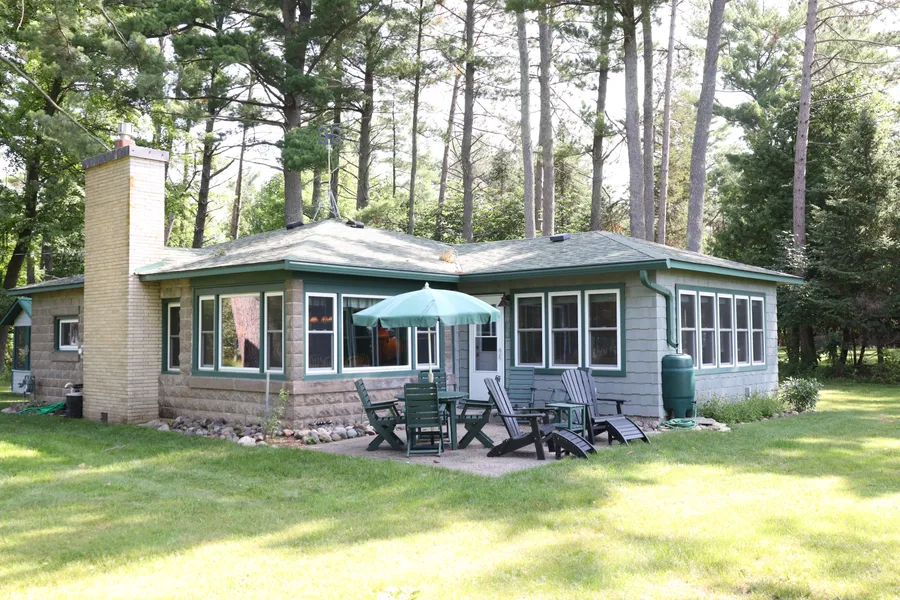 Magnificent views of Burnett County’s largest lake from this double sized lot - 200 feet of frontage and 2 acres! Year around 3BR cabin has been meticulously cared for, updated and improved by current owners, including new gutters and windows wrapped in aluminum for maintenance free exterior, the addition of 4-season room on the lakeside surrounded by windows and structurally enhancing and insulating the roof. Warm and welcoming interior - kitchen is open to the living room with gas log fireplace and classic brick surround. Brand new detached garage with design details to match the cabin is finished and insulated inside. Large level yard surrounding the cabin is great for yard games and is peppered with majestic pines – including one with an eagle’s nest! Large flat area at the lakeshore - enjoy boating and fishing adventures on the big lake, Little Yellow Lake and the Yellow River and stop at a bar/restaurant on the lake to cap it off!
