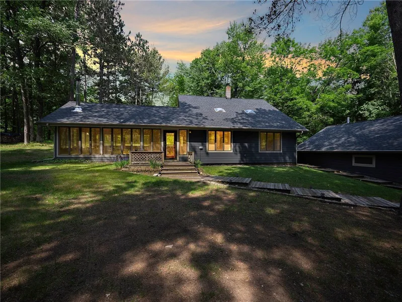 Tucked into the woods on 2 private acres in Voyager Village, this 3BR/2BA home/cabin offers peaceful Northwoods living with all the work already done! Enjoy vaulted wood ceilings, an open living space filled with natural light, and a large family room perfect for relaxing or watching wildlife. One bedroom and laundry are conveniently located on the main level for easy living. The spacious back deck is great for entertaining or quiet mornings in nature. Oversized garage for all your toys. Thoughtfully maintained with new roof, siding, furnace, flooring, kitchen updates, and more-move-in ready with no projects needed! Enjoy access to lakes, golf, trails, indoor pool, clubhouse, and all Voyager Village amenities!!