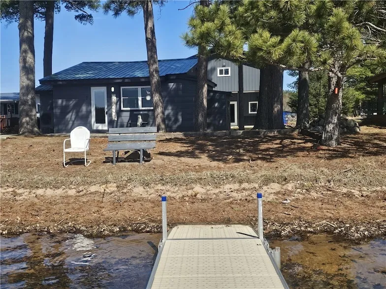 Discover the ultimate escape at our newly renovated, maintenance-free furnished cabin, nestled on the shores of Nicaboyne Lake. Walk the level sugar sandy beach shores, the included dock or swim in the crystal-clear waters just steps from your cabin door. This charming four-season lake place offers a spacious trendy culinary kitchen area w/pantry, beautiful engineered wood floors, and a dining & living area that captures the picturesque lake views from every location. The master 1+bedroom has a walk in closet that could transform to an office or more sleeping space. Stroll to the completely insulated steel (maintenance free) huge garage, measuring an impressive 72 x 28; invites possibilities as a bunkhouse, entertainment hub & toy storage. Grab the upper pull down steps for additional tree house style climbing fun! Whether you're relaxing on the concrete-covered patio or enjoying the seamless walkway & driveway, every inch is designed for ease. Embrace comfort lakeside living today!