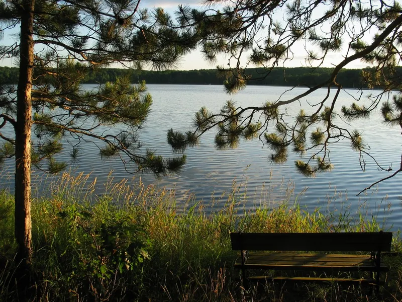 Exceptional wooded lake lot on 326 acre Rice Lake. 150' of frontage with sandy lake bottom. Towering pines and oaks provide an ideal setting for a lake cabin of any size...or just enjoy as is with existing bunkhouse. Level elevation, west view, great fishing, boating or explore with canoe or kayak. Connects to the Yellow River and also Benoit Lake to the north.