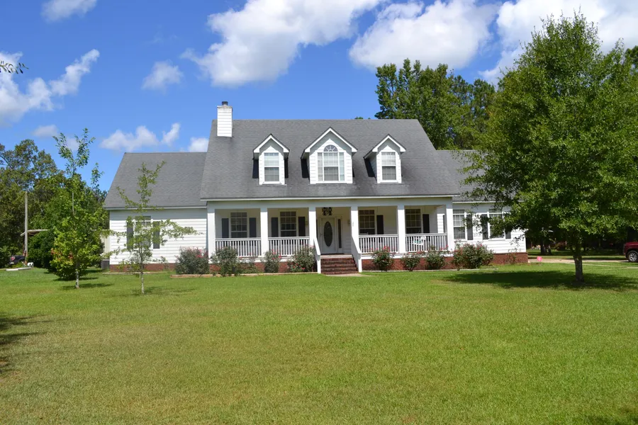 This Beautiful country home sits on 9 (+-) acres. Built in 2009 the home has approx. 2642 Sq.Ft. and has two stories with all the modern features. The living room has beautiful crown molding with 9-foot ceilings and a stone fireplace with gas logs, beautiful mantle and custom drapes. Coming from the den into the kitchen/dining room the kitchen has granite countertops and Tile backsplash with plenty of counterspace and a breakfast bar. The den, master bedroom and the stairs have gorgeous hardwood floors. Master bedroom has custom shades and beautiful drapes, and adjoining bath with walk-in shower a new custom-built double vanity and granite countertop, with a huge linen closet and his and hers closet. Downstairs has three bedrooms and two baths and upstairs there are two bedrooms with some new carpet and a huge, lovely bath. The area over the garage the owner has insulated it so you could...