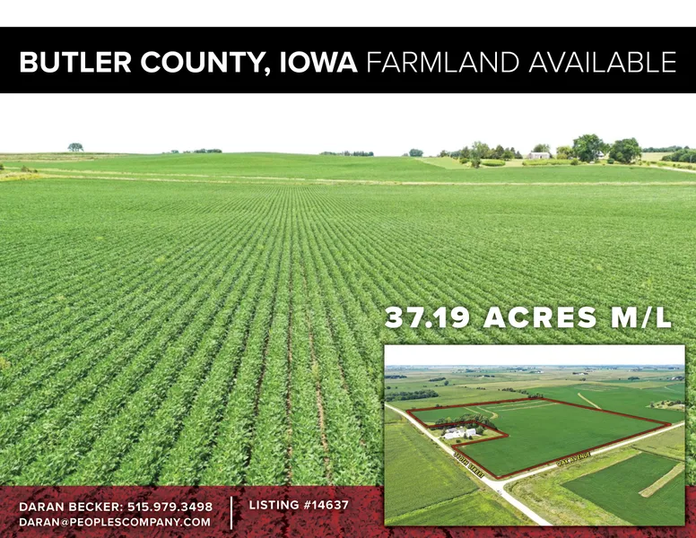 Offering 37.19 acres m/l of high quality Butler County, Iowa farmland for sale located just northeast of Pakersburg in section 17 of Albion township. There are 36.07 acres considered FSA tillable carrying a CSR2 of 79.5. The primary soil types include Clyde-Floyd, Coland, and Kenyon. This would make a great addition to anyone's operation or a nice starter farm for a beginning farmer.