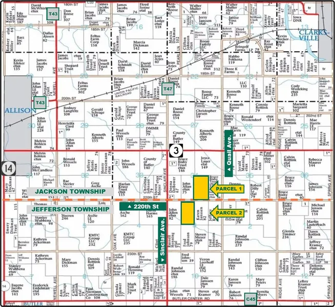 Research Parcel InformationApproximately 3 miles southeast of Allison along 220th St. Going east of Allison on Hwy 3, turn south on Sinclair Ave. to 220th St. then turn east approx. mile. Jackson Twp.