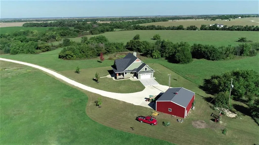 Impressive and secluded custom home in the heart of Butler County, with easy access to all surrounding cities and towns, including the Wichita metro area. Privately located on 40 acres, this stunning Craftsman-style home was just built in 2013 and features numerous CUSTOM UPGRADES and HIGH END FINISHES, including ?? hand hewn Acacia wood floors, Anderson Pro Series 200 windows, solid oak interior doors, Anderson exterior doors, 50 year Impact Resistant shingles on roof, Medallion handcrafted kitchen cabinetry, granite countertops and Kohler fixtures. Mechanically, it is top-of-the-line, with a Geothermal Closed Loop HVAC system with hot water generator, built in humidifier and dual air filtration. Additional home amenities include a Generac Backup Generator with manual transfer switch, wired for fiber optic Internet, wired for 5.1 Surround sound with installed Insignia Speakers, designer...