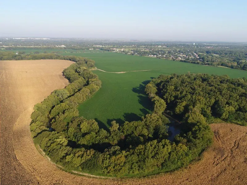 PROPERTY DESCRIPTION: 425+- acres of premium quality Butler County, Kansas land behind the El Dorado Lake. This farm consists of approximately 320 acres of tillable currently planted to Soybeans and Corn, 92% of which is Verdigris Silt Loam Soils. Very productive and very desirable. The balance of the property consists of the Walnut River, Bird Creek, Bemis Creek, and timber. Beautiful old mature Oak, Walnut, Sycamore, and many other varieties line the river and creeks offering an abundance of recreation opportunities. Kansas Whitetail Deer, Turkeys, Geese, and Ducks all frequent this farm. The fishing is unmatched on a privately owned property with Flathead Catfish, Walleye, White Bass, Blue Catfish, Channel Catfishand of course normal freshwater fish such as Bass, Cra...