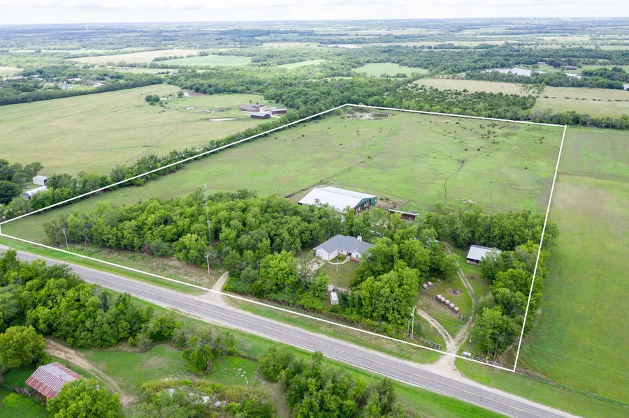Call/Text Cathy Sheets 316-215-1359 for more information! 28.8 acres on blacktop! Come see this 3514 square foot home and animal (horse/goat) property with acreage and a pond! 5 bedrooms, 3 bathrooms total with laundry room and pantry on the main floor, and a farmhouse kitchen that opens to the dining area and the Great Room, and a raised fireplace, wood-burning with gas igniter. Additional living space in the lower level with a family room and the 4th and 5th bedrooms. There is even a second laundry area downstairs as well as a wood-burning stove with stone-tiled floor/wall area. Rural water,natural gas, and high speed internet are nice bonuses to rural living. BEAM built-in vacuum installed, too. With the first floor deck and walk-out basement/concrete patio, you can enjoy your property from all angles. Once you're outside you'll want to take a look around this working farm with indoor riding arena. The 100x100 arena barn with 60x100 riding arena inside also includes a 15x40 insulated tack room with heating, cooling, 1/2 bathroom, bar and refrigerator. Onto the 30x40 open machinery barn with tool room and is used for tractor storage. The 25x40 enclosed shop is also insulated as well as heated and cooled with lean-to on the south side, water inside and 220 installed. There are multiple other sheds and shelters for all animals including a hay shed and chicken house. There is also a berm shooting range. The property is fenced and cross fenced for horses and goats with some corral panels included. The pond is in the NW corner of the property. Home has had a pre-inspection and with internet tower on the property it offers some additional income and endless internet access. New roofs on all buildings in 2019 home also has gutter covers with leaf guards. Country farm and ranch living at its finest with your choice of Augusta or Bluestem schools. Come start your new life here! All animals welcome. Note this is a working farm: not suburbia or a hobby farm. What does that mean to you? This farm qualifies and is registered with the U.S. Department of Agriculture-Farm Service Agency and is a producing farm that qualifies for IRS Schedule F. It's currently set up for goat production along with horses and chickens. You can get your taste of the Flint Hills living as this home sits atop a rocky hill that overlooks the wonderful acreage behind and below. Trees also surround the home providing privacy. Dual access circle driveway with a 2 car garage.