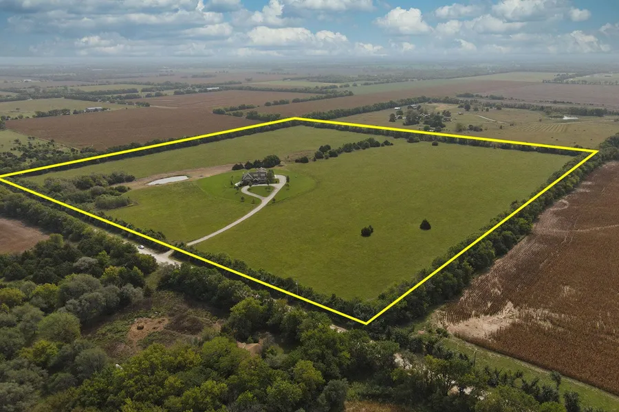 LIVE & ONLINE!!! PREMIER!!! Amazing opportunity to purchase a custom-built timber frame home of 5,618 +/- square ft on 39.6 +/- acres in Benton, Kansas! This meticulously maintained home of 5+ bedroom, 3.5 bathroom is filled with natural light and custom touches throughout--from the impressive post and beam construction to the main level master bedroom suite to the classroom/library. Enjoy gorgeous sunrises as you sit on the screened-in back porch and look across the pond. Located just 1 mile east of Stearman Airfield and only minutes from Andover and Wichita. A country retreat you dont want to miss!
