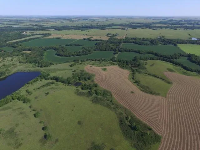 355.2+- acre Butler County, Kansas Farm with everything you could ask for! Nestled in the Flint Hills of Kansas, this property includes a Watershed Lake, Nicholas Creek, 2 ponds, large elevation changes and rolling Flint Hills terrain, 120+- acres of creek bottom tillable ground currently planted to soybeans, beautiful Flint Hills pasture, and heavy timber. This farm is one of the nicest agriculture and recreation combination properties you will find. Nicholas Creek has good clear water, gravel bars, and several fishing holes with Bass, Perch, & Channel Catfish. The watershed lake on the property sits on the very south end of the property tucked at the bottom of two large hills. The Bass fishing is excellent, along with everything else you would expect to catch in a Flint Hills watershed lake. Ducks and Geese frequent the live water in the creek, the watershed, and the tillable agricultu...